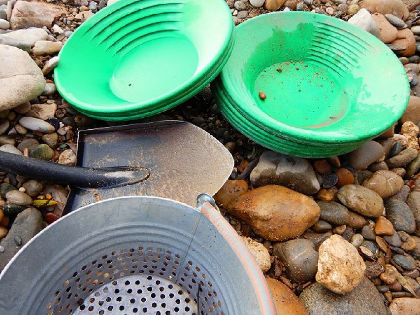 Gold ist schon ein merkwürdiges Material. Es ist sehr, sehr selten und ziemlich eigenwillig. Es ist so eigenwillig, dass Du im voraus nicht weißt, wo mehr davon liegt als anderswo. Klar, den Fluss musst Du kennen und auch wissen, weshalb es sich wo besonders gerne ablagert. Wer denkt, eine Schaufel und eine Wachpfanne genügen, wird ziemlich rasch an seine Grenzen kommen und enttäuscht den Rückweg einschlagen.
