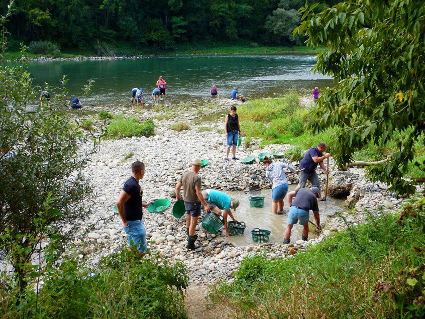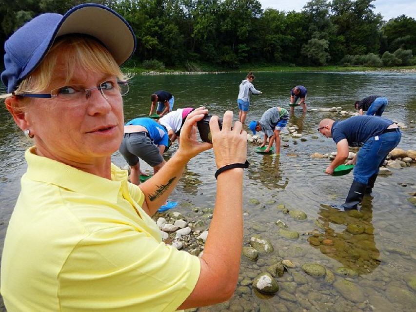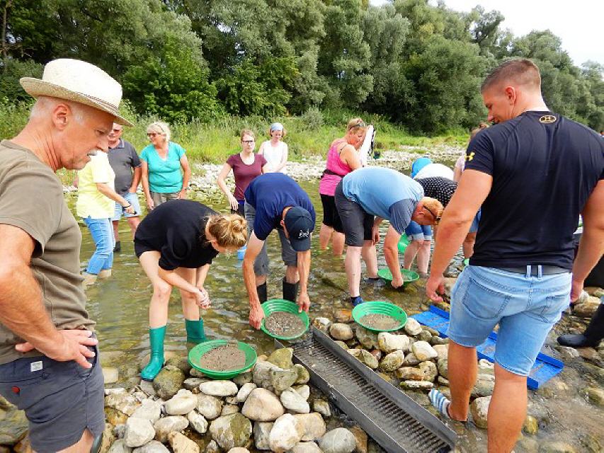 Ansonsten verlief der Tag so spannend wie üblich. Zunächst brachen wir von Bad Bellingen aus zum südlich des Kurortes gelegenen Goldwaschplatz auf, bezogen unser “Basislager” und gingen nach einer kurzen Einleitung sofort ans Werk.