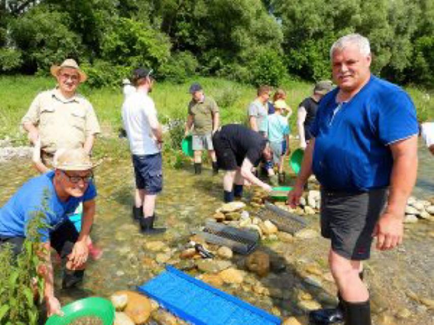 Im weiteren Verlauf fanden immer mehr ihr erstes selbst gewaschenes Rheingold. Die Teilnehmer hatten ziemlich rasch die richtige Waschtechnik angewandt. Ich war begeistert und musste immer häufiger nur noch ihre Funde bestätigen.