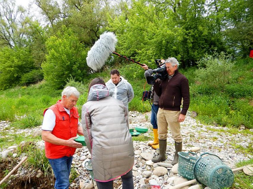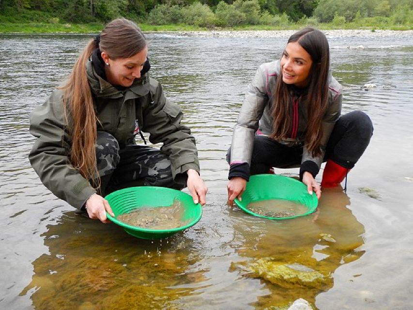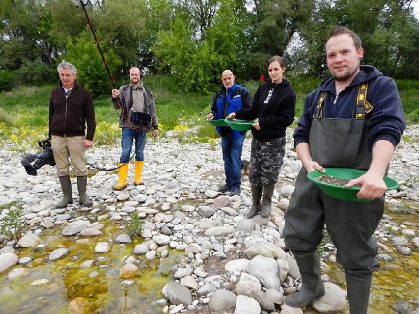 Ein besonderer Gast war heute Lea Wagner. Die TV-Moderatorin, bekannt durch die Sendung “Sport im Dritten”, wollte sich selbst im Goldwaschen erproben und natürlich auch selbst echtes Rheingold finden. Mit dabei war ein Kamerateam, das ihre Suche aufzeichnete. Dabei wurden ebenso die übrigen Teilnehmer interviewt.