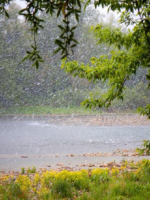 Zur Mittagspause zogen wir uns – wie üblich – zum gemeinsamen Grillen zurück. Das TV-Team hatte den Goldsucherbeitrag gedreht; Lea Wagner musste noch zu einem weiteren Termin und verabschiedete sich. Über das erstmals in ihrem Leben selbst geschürfte Gold freute sie sich rieisig. Kaum waren die Fernsehleute gegangen, setzte heftiger Wind ein, der von heftigen Regenfällen begleitet wurde. Im Eiltempo spannten wir zwischen den Bäumen eine große Wetterfolie auf und ließen es uns am Lagerfeuer gut gehen. Am Nachmittag wurde der Regen stärker, und ich verabschiedete die Teilnehmer. In jedem Fall wollten sie wieder kommen. Zu sehr waren sie von der Goldsuche beeindruckt. Trotz des Unwetters blieben ein paar Goldsucher wie Wolfgang, Hans und Steffi zurück, immer in der Hoffnung, das Unwetter werde wohl bald vorüber sein.