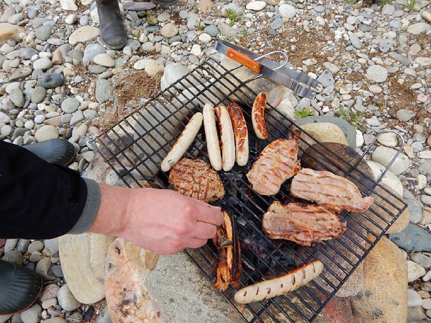 Bis zur Mittagszeit hatten alle Teilnehmer ihr erstes selbst geschürftes Gold in der Pfanne. Darüber und über die Herkunft des Metalls wurde während der Grillpause gesprochen, aber auch manch andere Geschichten darüber erzählt. Anschließend hieß es, mittels der Goldwaschrinnen die Goldausbeute zu erhöhen.