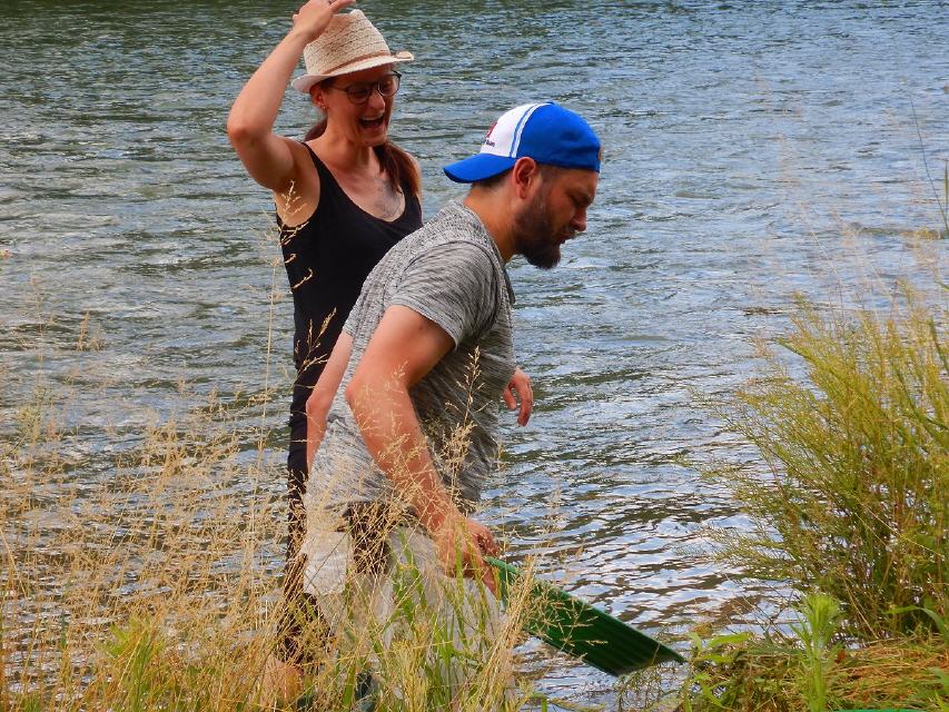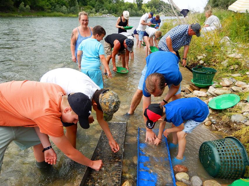 - Anna K. aus Freiburg: Es war ein wundervoller Goldschürftag. Die Sonne brachte Wärme von oben und die nassen Füße im Rhein die Abkühlung von unten. Nach kurzem Fußmarsch und Einführung in die Kunst des Goldwaschens ging es auch schon los Die Pfannen wurden mit Steinen, Sand und Kieseln gefüllt und mit Geduld gewaschen. Die ersten Erfolge waren schnell zu sehen. Steffi und Franz sind ein tolles Team. Steffi hilft allen mit Engelsgeduld, die Pfannen zu inspzieren und Franz ist immer schnell zur Stelle, wenn man Hilfe oder Rat braucht. Der Tag verging schnell und war sehr kurzweilig. Goldwaschen - ein großer Spaß für Groß und Klein! Danke für den tollen Tag. Luis und Erik