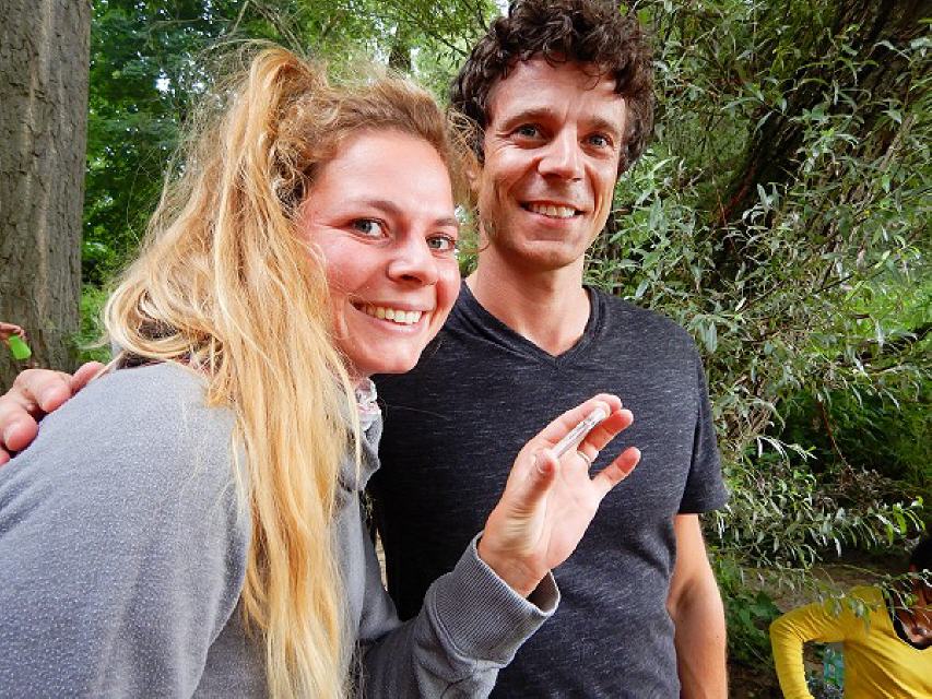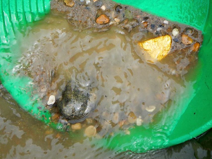 - Karl S. aus Üdersdorf: Hallo Franz und Steffi, erwartungsgemäß sind wir an dem Wochenende nicht wesentlich reicher geworden – aber nur soweit es den finanziellen Aspekt betrifft. Natürlich haben wir einige Flitter gefunden. Über jedes noch so kleine Teil haben wir uns sehr gefreut, und unsere Mundwinkel gingen nach oben. - Vielen Dank für die fachmännische Einweisung im Umgang mit der Waschpfanne / Rinne und den sehr interessanten Hintergrundinformationen über die Herkunft des Goldes etc. Es waren zwei richtig schöne und unvergessliche Tage, an denen wir auch weitere nette Goldsucher kennengelernt haben.