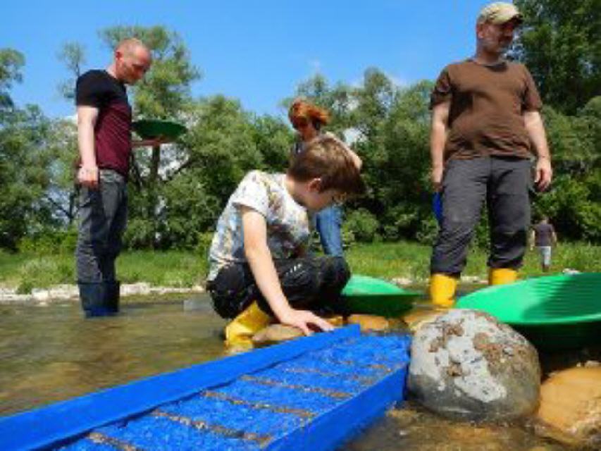 Mit großer Begeisterung waren alle dabei, das sehr seltene Rheingold zu schürfen.