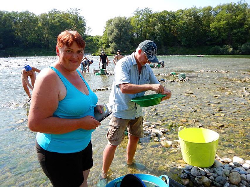 - Marion R. aus Berikon (Schweiz): Bei schönstem Wetter begaben wir uns unter kundiger Anleitung auf Goldsuche und mussten schnell feststellen, dass dies keine einfache Arbeit ist: Kies buddeln und danach mit dem richtigen Schwenk die leichten Sande rauszuwaschen, um vielleicht schwarzen Sand in der Pfanne zu haben, ist nicht ohne! Es hat aber Spass gemacht und wer wollte, konnte sich im Rhein noch abkühlen. Ein toller Tag!