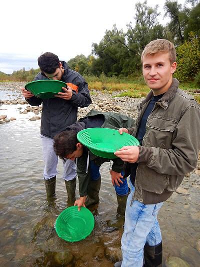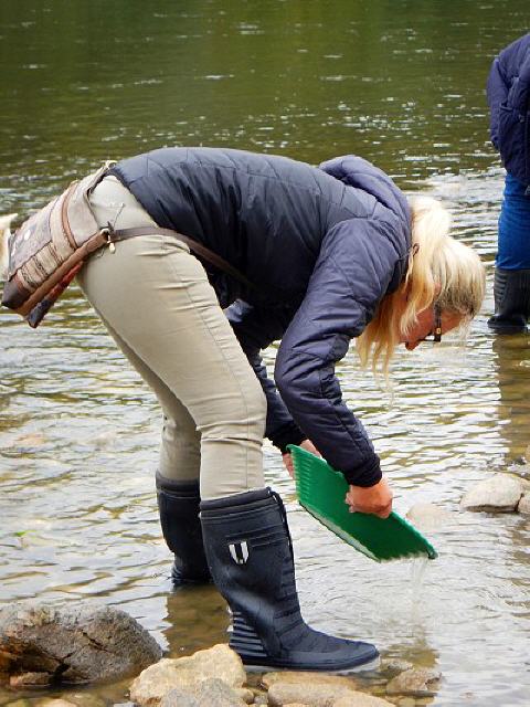 Mich freute der Wissenshunger, konnte ich die Teilnehmer doch umfassend informieren und ihnen so eine Fülle theoretischen Rüstzeugs mit auf den Weg geben. Doch der schwierigste Teil war dann doch die Praxis. Was so leicht aussieht, das Schwenken der Pfanne, erfordert viel Geschick. Ansonsten wird das im Sand verborgene Gold fortgespült. Die Teilnehmer meisterten auch diese Aufgabe mit Bravour.