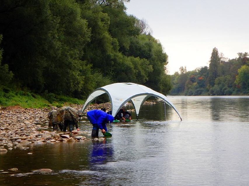 Schon der Vortag bereitete mir ein merkwürdiges Grummeln im Magen. Ausgerechnet am Goldwaschtag sollte eine Regenfront über uns hinwegziehen. Dauerregen war angekündigt. Teilnehmer riefen bei mir an, ob das Goldwaschen dennoch stattfände. Oder sie sagten ihre Teilnahme ab beziehungsweise wollten es sich überlegen.