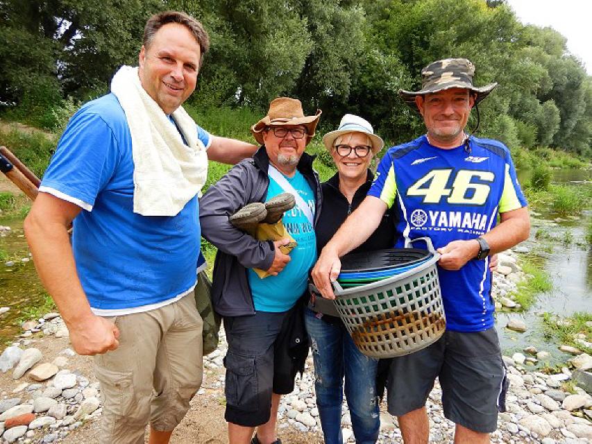 Der Himmel hatte dann doch ein Einsehen. Erst spät verdrängte die Sonne die zuvor geschlossene Wolkendecke und bot uns Goldsuchern noch einen herrlichen Nachmittag. Als ich die Teilnehmer bei der Tourist-Info in Bad Bellingen abholte, lobte ich noch die schattenspendenden Wolken am Himmel. Schwitzen würden wir heute ganz bestimmt nicht, hoffte und sagte ich.