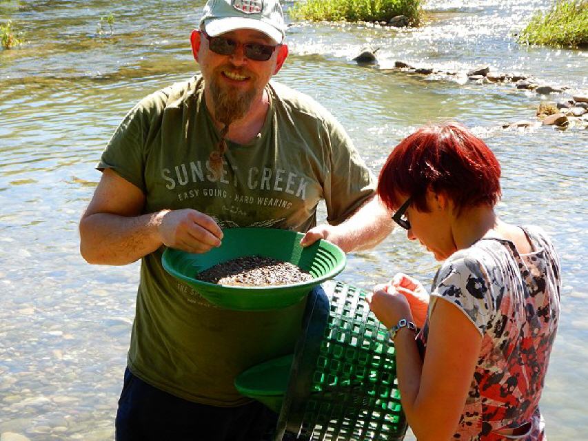 - Melanie I. aus Weissach: Mein Ehemann träumte schon lange davon, einmal selbst Gold suchen zu gehen. Er hatte es im Fernsehen im großen Stil in Alaska gesehen und war begeistert. Natürlich ist die Goldsuche am Rhein ein anderes Kaliber, aber der Ausflug war ein toller Tag. Die Erklärungen, das Graben, eine Stärkung am Grill und dann endlich die ersten Goldkrümel in der eigenen Waschpfanne! Einfach klasse!