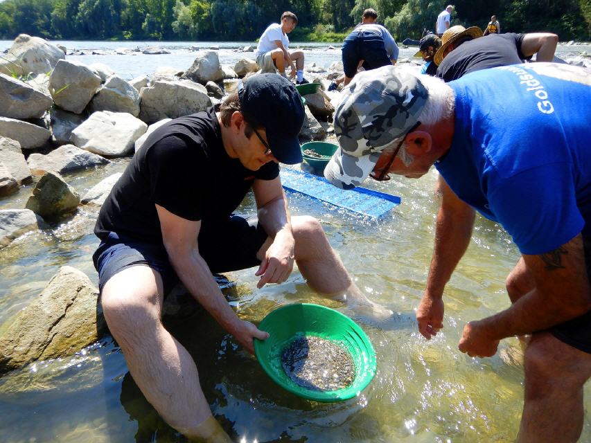 Kein Wunder, dass dieser Goldwaschtag auch länger dauerte als geplant. Andererseits machte es auch uns sowie Wolfgang mächtig viel Spaß, unser Wissen den Teilnehmern weiterzugeben und ihnen beim Schürfen zur Hand zu gehen. Für den einen oder anderen war der Goldwaschtag zugleich der Startschuss für sein neues Hobby: das Goldwaschen. Ein Paar wollte diesen Tag zum Anlass nehmen, um das erworbene Wissen sogar in den nächsten Tagen anzuwenden. Sie hatten eine Ferienwohnung gemietet. Andere wiederum kündigten an, schon bald erneut hierher zu kommen, die idyllische Natur am Rheinufer zu genießen und nebenbei auf die Jagd nach dem König der Metalle zu gehen. "Dabei kann man total abschalten!" erklärte mir eine Neu-Goldsucherin.