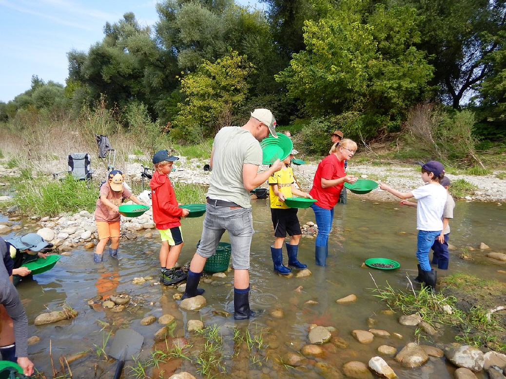 So ein wunderschöner, goldiger Tag! Sonnenschein, traumhaftes Spätsommerwetter und echtes Rheingold! Gewaschen wurde es von den Goldwasch-Teilnehmern. Vor allem die Kinder waren bis zum Schluss voll bei der Sache, entdeckten ein Flitterchen nach dem anderen. Leider verging auch dieser Goldwaschtag viel zu rasch. Beim Abschied sicherten einige Leute zu, sie wollten unbedingt wiederkommen. Spätestens im kommenden Jahr. Mit dem Erlernten und den Erfahrungen von heute müsste die Ausbeute noch viel größer sein...