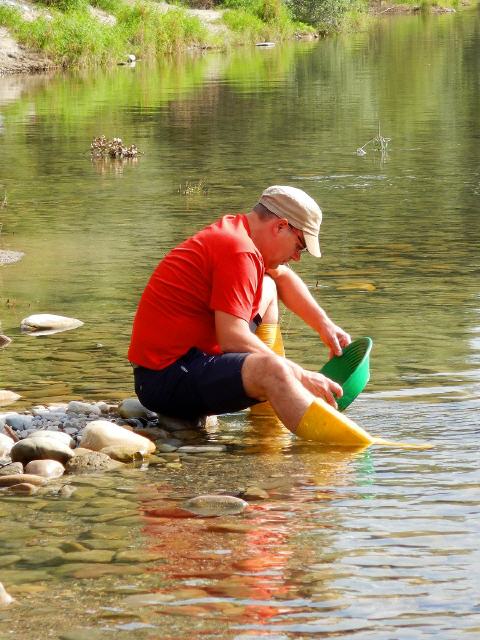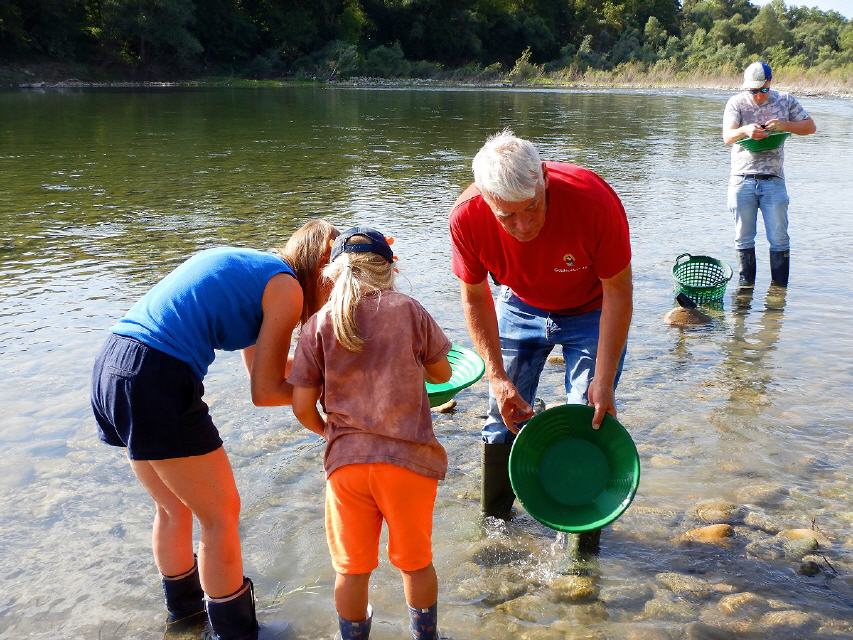 Das erfuhren die Teilnehmer dieses Goldwaschtages gleich zu Beginn. Denn schließlich sollten ja jeder von ihnen selbst geschürftes Gold mit nach Hause nehmen. Das konnte nur klappen, wenn auch an der richtigen Stelle geschürft wurde.