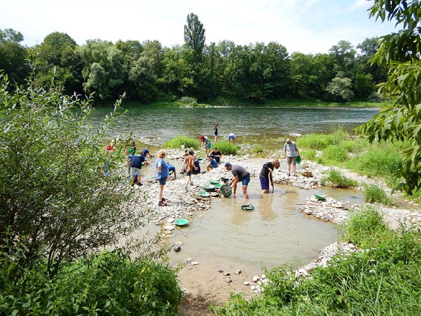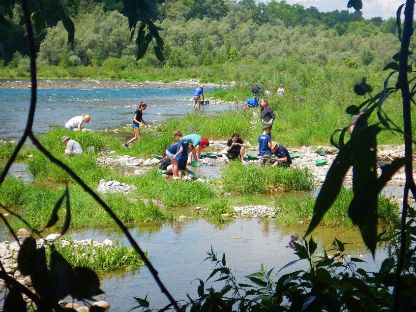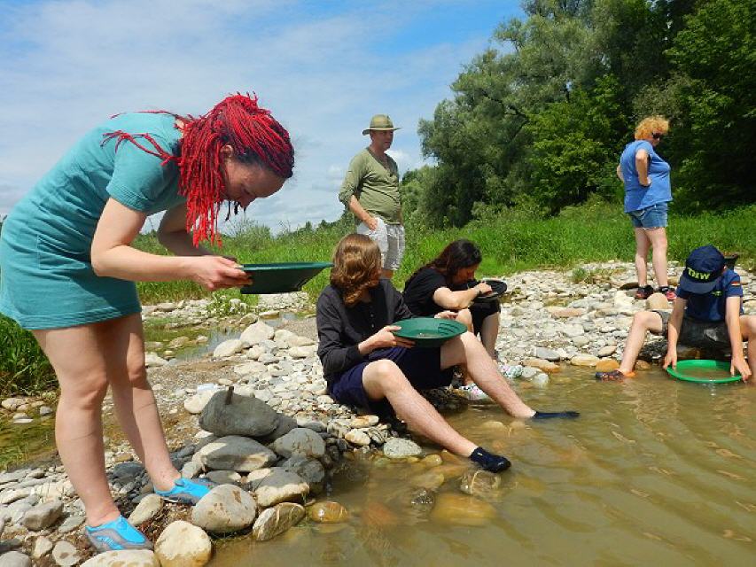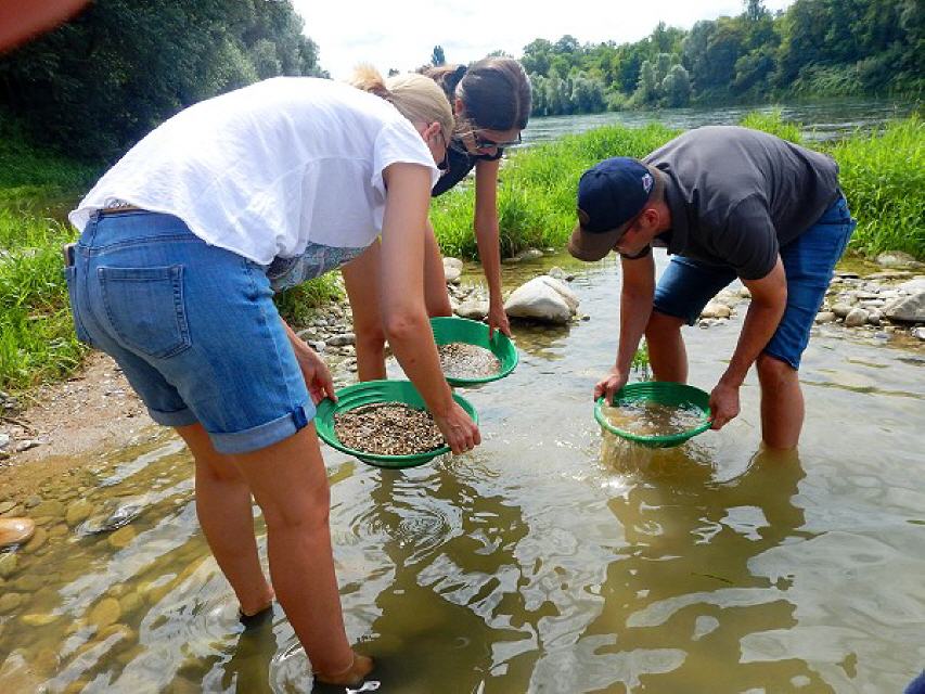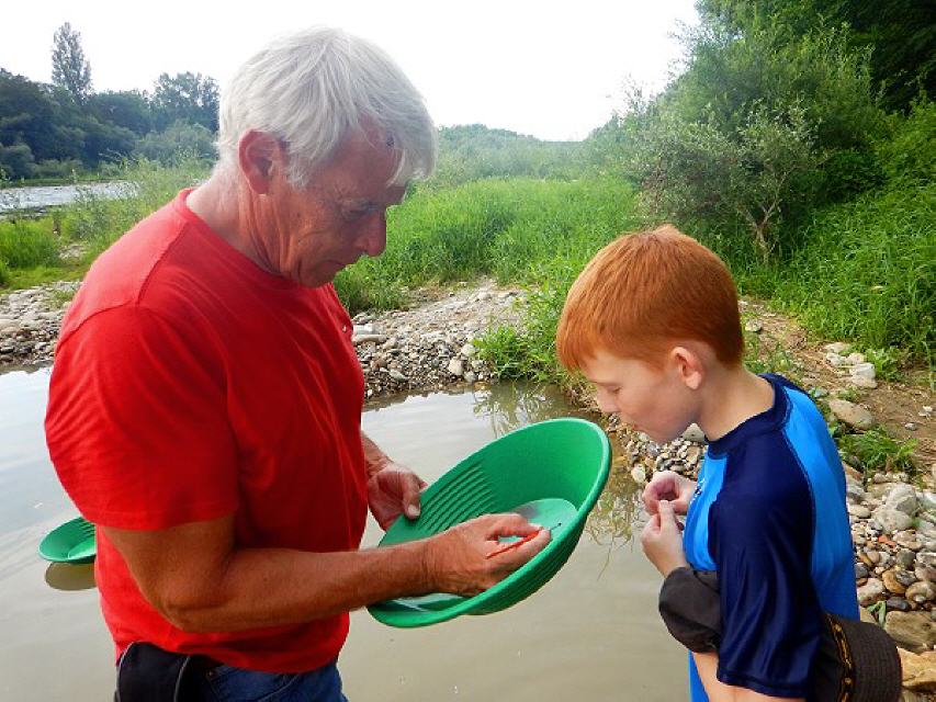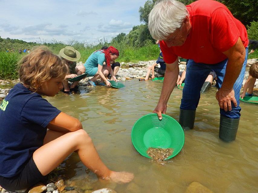 Bevor es am Rheinufer südlich von Bad Bellingen daran ging, das seltene Edelmetall aus dem Sand zu holen, führte ich die Goldsucher in die Geheimnisse des Waschens ein.
