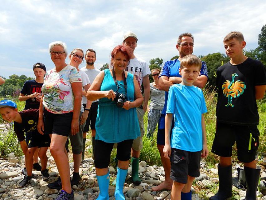 Noch bei der Begrüßung in Bad Bellingen standen wir unter einem tiefblauen Himmel. Es sollte ein Tag wie die vielen anderen in diesem Sommer auch werden. Dachten wir. Doch kaum am Goldwaschplatz südlich des Thermalortes eingetroffen, änderte sich das Bild sehr rasch. Dabei hatte ich meine heutige Truppe die ganze Zeit damit getröstet, unser Basislager würde unter schattenspendenden Bäumen eingerichtet – riesige und dichte Rheinwaldbäume. Ich konnte ja nicht ahnen, dass sich der Schatten gleich über den ganzen Rhein legte.