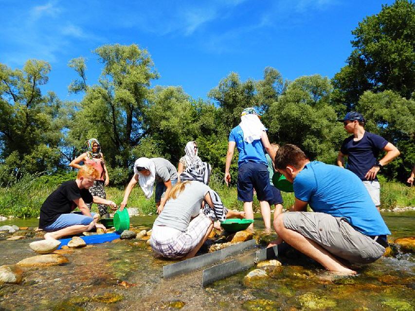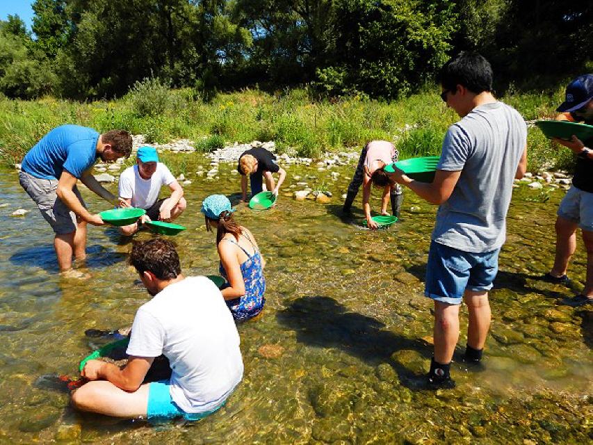 Auf die Goldwaschtage zusammen mit Leuten, die sich in die Geheimnisse des erfolgreichen Goldwaschens einführen lassen möchten, freue ich mich immer ganz besonders. Denn als Goldwäscher ist man ansonsten meist alleine unterwegs. Auf die Gruppe, die am Montag mit mir nach dem gelben Metall schürfen wollte, war ich schon seit längerer Zeit gespannt. Es waren Studenten von der Uni Freiburg.