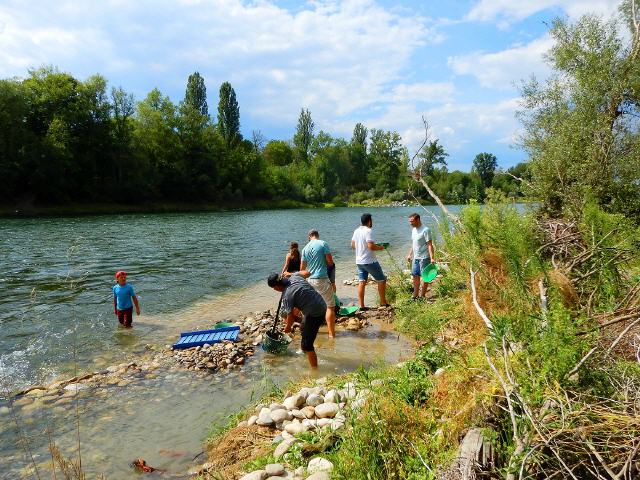 Dass wir - wie ansonsten üblich - keine Mittagspause einlegten, lag also an den Teilnehmern selbst. Nur vereinzelt zogen sich manchmal Goldsucher zurück, bissen beherzt in ein belegtes Brötchen, tranken etwas, nur um gleich wieder zur Schaufel zurückzukehren und nach den nächsten Goldstückchen zu suchen. Dabei hatte ich etliche Male den Versuch gestartet, alle um mich herum zu versammeln, damit sie sich ausruhten und aßen. Es half einfach nichts. Trotzdem machten Steffi und ich immer wieder auf das notwendige Trinken aufmerksam. Denn es war heiß; die Temperatur lag um die Mittagszeit sicherlich über 30 Grad.