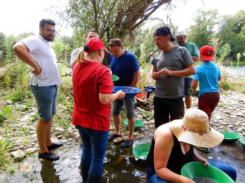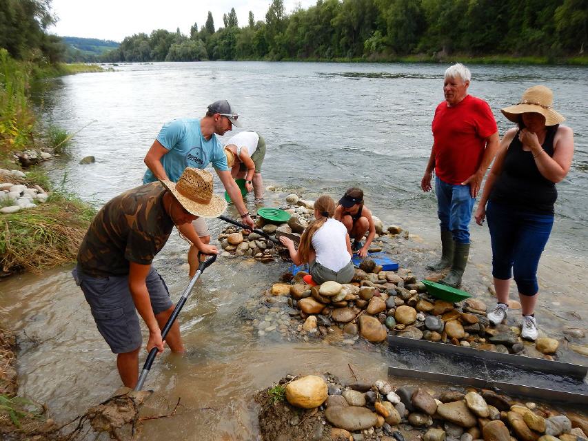 - Christine H. aus Wechingen: Hallo Steffi, hallo Franz, wir waren... mit beim Goldwaschen. Der Tag war ein echtes Erlebnis und hat unseren Neffen dazu bewogen, sich eine Waschpfanne und ein Sieb zu kaufen. Das Goldfieber ist geweckt. Viele Grüße Christine und Rainer H. mit Florian und Lena