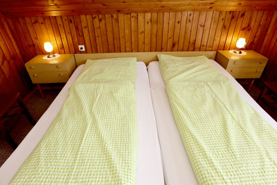 - Im zweiten Zimmer stehen zwei getrennte Betten sowie ein Kinderbett.
