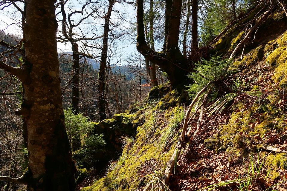 Viel ist von der einstigen Burg, die den Eingangs ins Höllental bewachte, nicht mehr übrig. Dennoch hatte die Burg Falkenstein am Ausgang des schroffen Tales bei der heutigen Gemeinde Buchenbach im Dreisamtal große Bedeutung. Jahrhundertelang hieß das Höllental übrigens nach dem Geschlecht der Adligen: Falkensteiner Tal. Unweit der Burg bestand eine zweite und weniger bekannte Anlage: Burg Bubenstein. Der vergessene, alte 2-Burgen-Rundweg hat es in sich und belohnt mit einer fantastischen Sicht hinunter ins felsige Höllental.