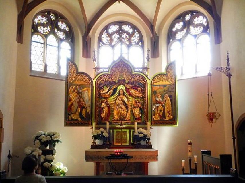 Sie wurde 1912 / 13 am Hang des Goldenen Kopfes über Elzach errichtet, nachdem die ursprüngliche Wallfahrtskirche 1778 durch eine Hochwasserflut vernichtet worden war.