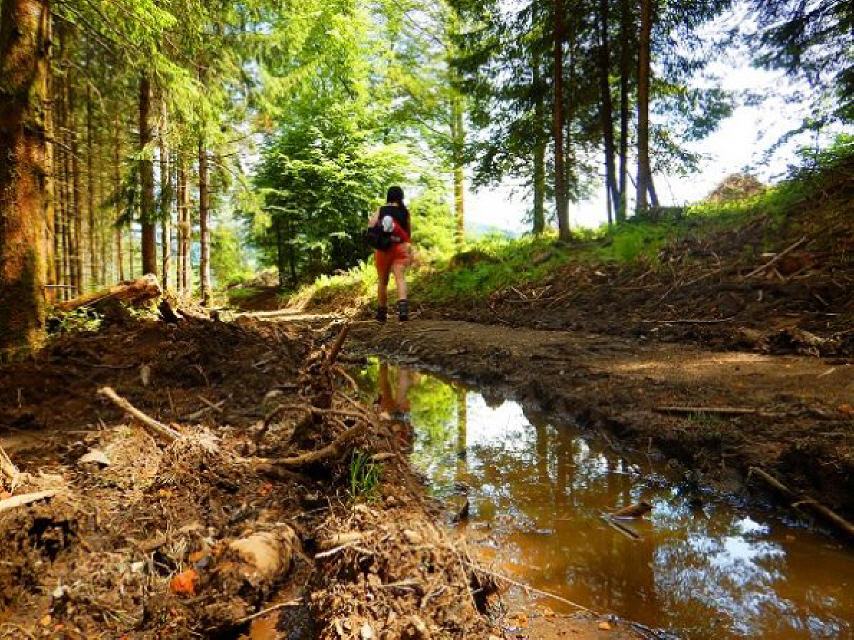 Dann führt der Weg weiter. Unten das Tal, oben das Vogelgezwitscher und dazwischen das Plätschern einzelner Bäche.
