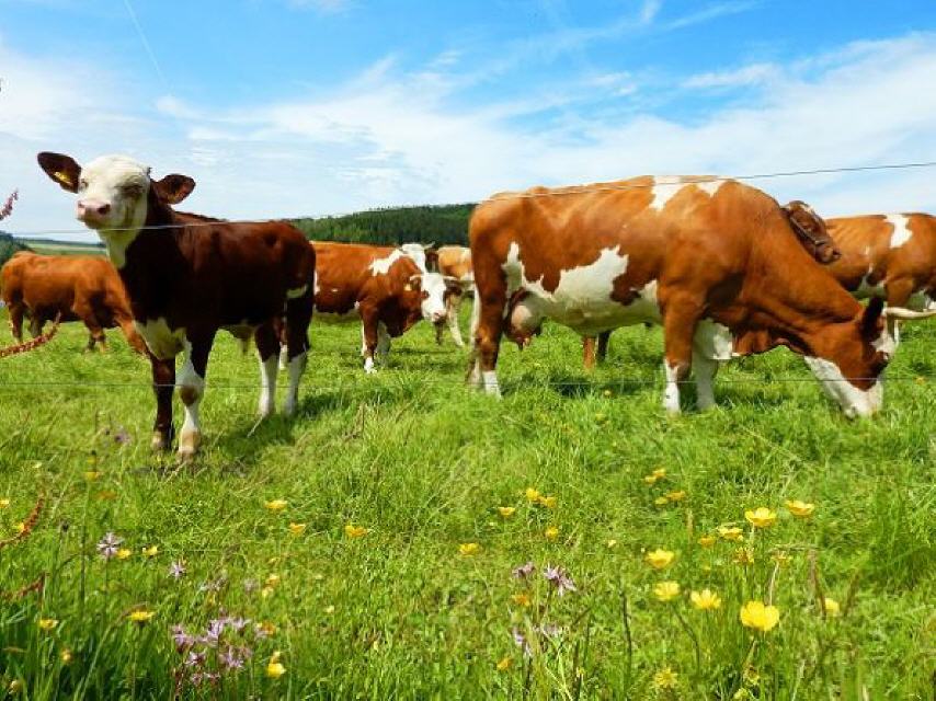 Nach der erfrischenden Pause führt uns der Weg (gelbe Raute) am Burgersberg vorbei über Höhenwiesen mit einer wunderschönen, freien Höhenlandschaft mit Wiesen und schönen Weiten.