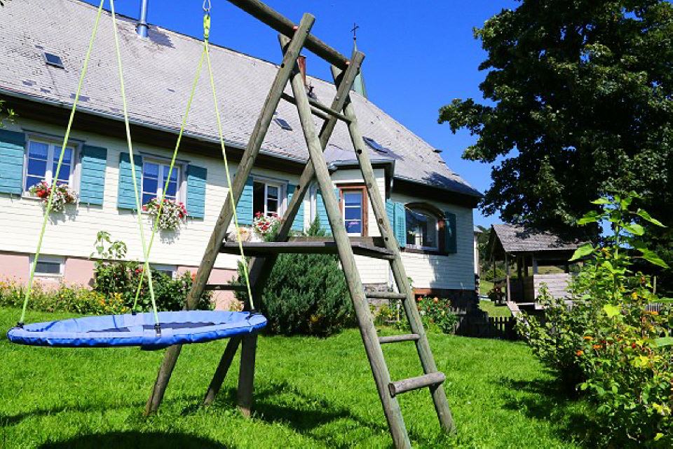Nutzen Sie den Garten mit Sitzgelegenheiten, Terrasse mit Tisch und Stühlen sowie Grill, Sandkasten, Schaukel. Starten Sie zu Wanderungen oder Ausflügen direkt ab der Ferienwohnung. Hofeigene Produkte wie Eier, Milch, Marmelade etc. erhältlich.