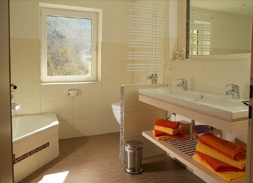 - Wohlfühlbad mit Eckbadewanne, große Dusche, WC, Waschbecken