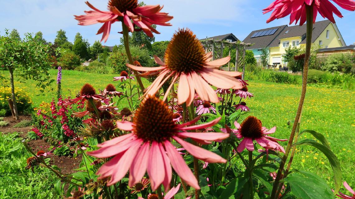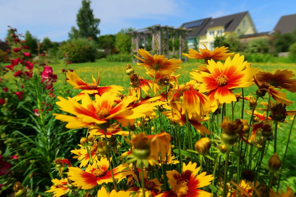 Mitten im Ort liegt der Bürgerpark Mönchweiler. Noch vor Jahren waren hier Äcker und Wiesen. Die Gemeinde hat daraus ein echtes Kleinod geschaffen mit Spazierwegen, Ruhebänken sowie Sonnenliegen und einem Abenteuerspielplatz.