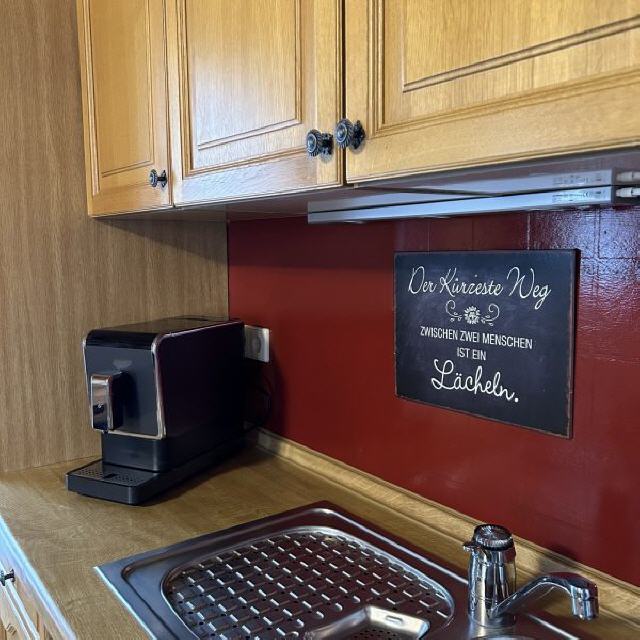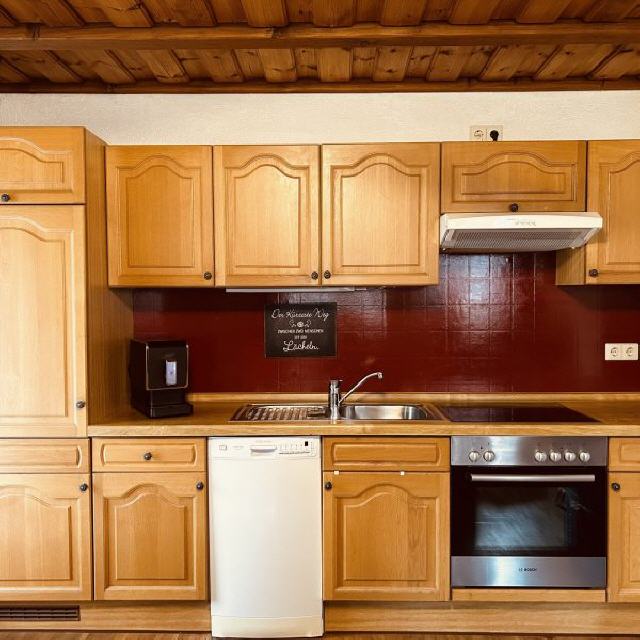 Ferienwohnung: Wohnung für bis zu 4 Personen. Zwei Schlafzimmer inklusive gemütlicher Wohnküche mit Geschirrspüler, Ceran-Kochfeld, Backofen, Kühlschrank mit Gefrierfach, Kaffeemaschine und alles was man täglich braucht, sowie einem Badezimmer und einer getrennten Toilette. Eigener Balkon.