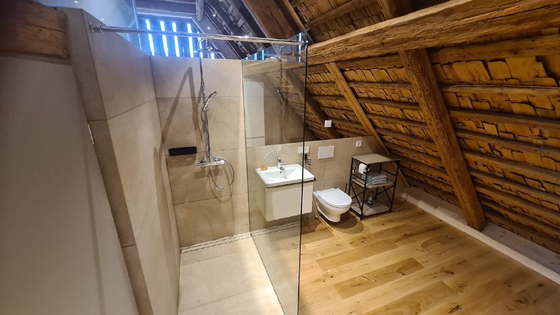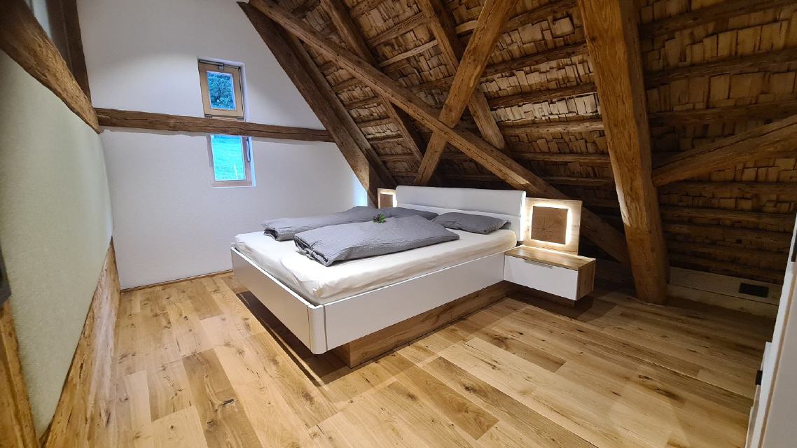 Das im Jahr 2024 fertig gestellten Apartment Hiesle finden bis zu 6 Personen über 2 Etagen Platz. Der offen gestaltete Wohn- und Essbereich mit BLick über das Schwarzwaldtal lädt zu geselligen Stunden oder zu ruhigen Momenten unter dem historischen Schindeldach ein.