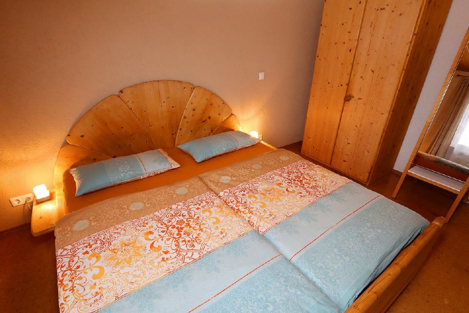 - Schlafzimmer: Doppelbett 200 x 200 cm, Kleiderschrank, Kofferablage, Korbstuhl, Nachtleuchten, Betten sind bezogen
