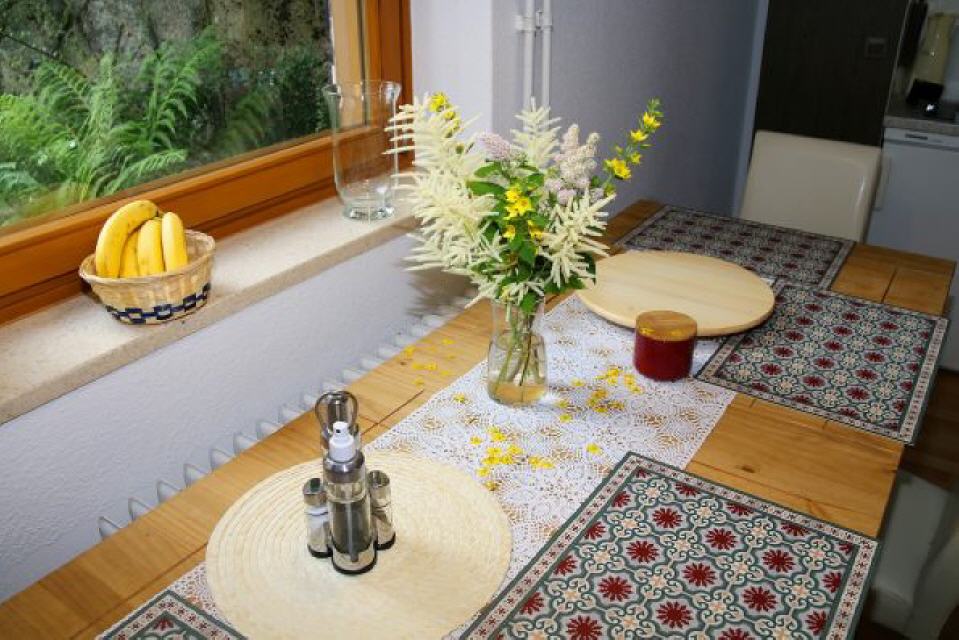 Genießen Sie eine unbeschwerte Zeit abseits von Lärm und Verkehr in unserer freundlichen, hellen und frisch renovierten Ferienwohnung (Nichtraucher, keine Haustiere). Sie ist geeignet für bis 5 Personen und komplett eingerichtet. WLAN ist vorhanden, ebenso eine Liegewiese mit herrlichem Panoramablick. In sonnenverwöhnter Lage, umgeben von Wald und Wiesen, bietet Ihnen unsere Ferienwohnung einen idealen Ausgangspunkt für Wander-, Bike-, Langlauf- und Schneeschuhtouren.