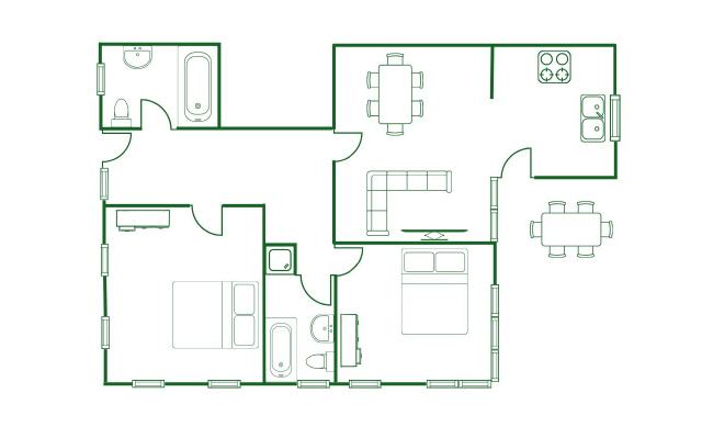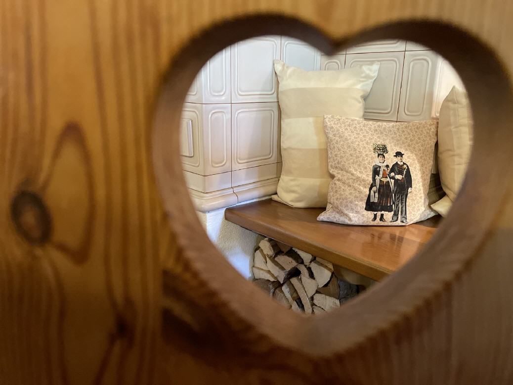 Die Ferienwohnung bietet Platz für bis zu 6 Personen und verfügt über zwei Schlafzimmer mit Doppelbetten und zwei separaten Badezimmern. Im offenen Wohnzimmer, welches an die großzügige Küche angeschlossen ist, befindet sich ein Kachelofen mit Sitzbank.