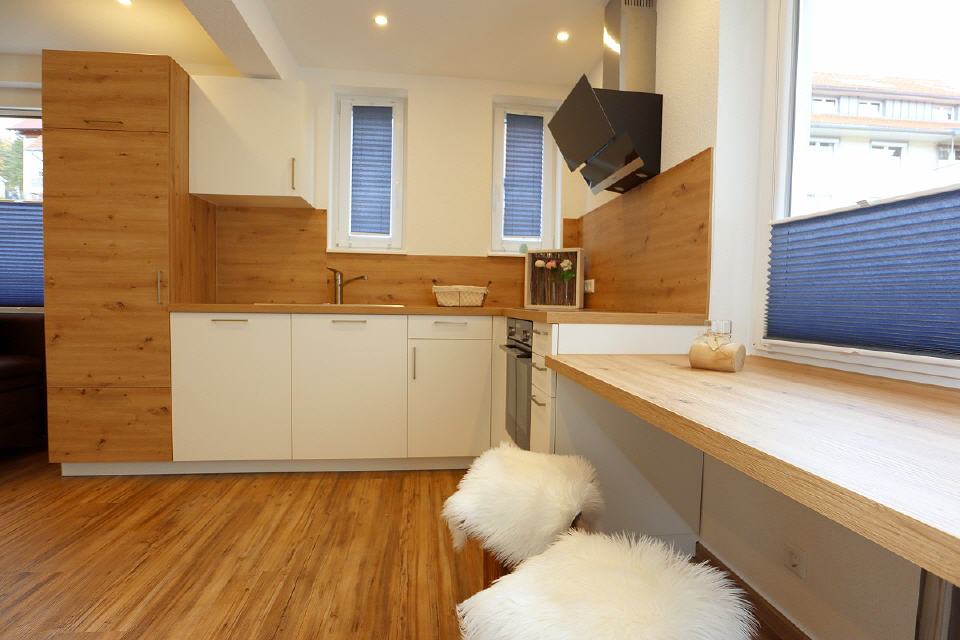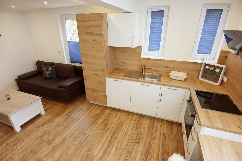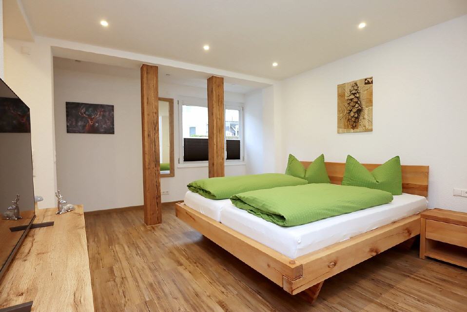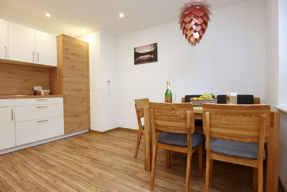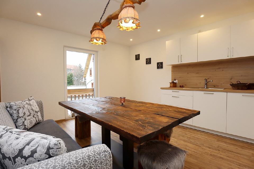 Das "Tannenzäpfle" ist unser Appartements für "zwischendrin". Es hat eine Wohnfläche von ca. 32 qm und ist damit größer als ein Hotelzimmer und kleiner als unsere großen Feriensuiten. Die Ferienwohnung verfügt über zwei Zimmer (Schlafzimmer und Wohn-Esszimmer). Es ist ideal für Gäste, die im eigenen Appartement frühstücken möchten oder sich abends selbst mal etwas warm machen wollen. Preis: ab 99 Euro pro Nacht (inklusive Endreinigung).