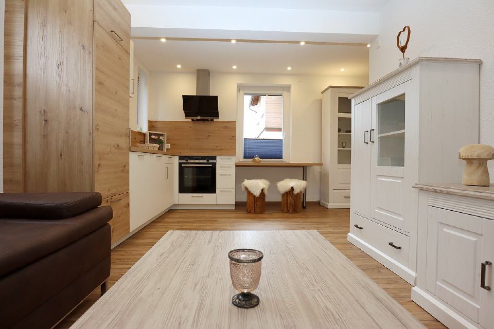 Die "Kuckuckuhr-Suite" ist unsere "mittlere" Feriensuite, die ideal als Ferienwohnung für ein langes Wochenende dient. Die Fewo hat eine Wohnfläche von 58 qm. Sie bietet aber auch Komfort für einen längeren Aufenthalt. Kleine, liebevolle Details erinnern immer wieder daran, dass man sich in der Kuckucksuhr-Suite befindet. Schlafzimmer, eine großzügige Küche mit Wohnzimmer und ein großes Bad mit Badewanne bieten Platz für max. 4 Personen. Preis: ab 109 Euro pro Nacht (inklusive Endreinigung).
