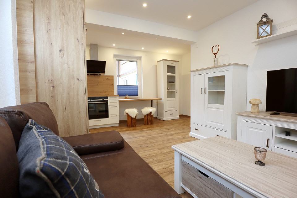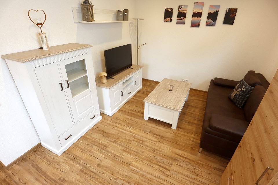 Auch das Appartement "Blindensee" ist etwas ganz Besonderes. Es hat eine Wohnfläche von ca. 48 qm und ist damit größer als ein Hotelzimmer und kleiner als unsere großen Feriensuiten. Die Ferienwohnung verfügt über zwei Zimmer (Schlafzimmer und Wohn-Esszimmer). Es ist ideal für Gäste, die im eigenen Appartement frühstücken möchten oder sich abends selbst mal etwas warm machen wollen. Preis: ab 99 Euro pro Nacht (inklusive Endreinigung).