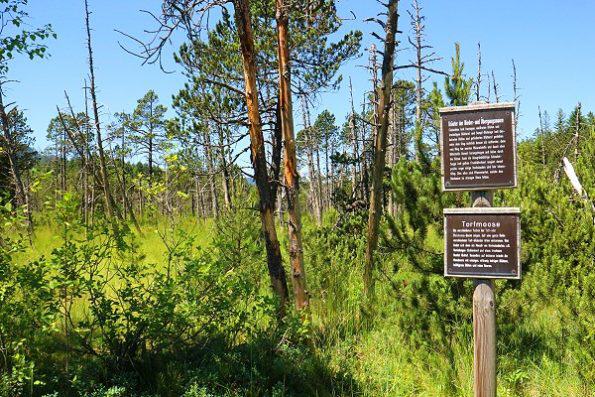 Direkt bei Hinterzarten, etwa 400 Meter östlich des Bahnhofs, beginnt der bequeme Rundweg um das Hochmoor. Es verdankt seine Entstehung der Lage auf einer flachen Wasserscheide: nach Westen fließt das braue Moorwasser über das Moosbächle ins Höllental, nach Osten in den Titisee.