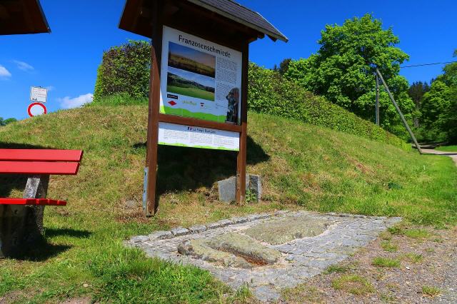 Unmittelbar beim Freibad Kappel ist gut sichtbar die Franzosenschmiede. Dabei handelt ess ich um einen Amboss-Untersatz mit dem Kühltrog. Er diente den Soldaten im Dreißigjährigen Krieg als Feldschmiede. Die französischen Schmiede nutzten wahrscheinlich einen schon am Ort vorhandenen Stein, machten daraus den Untersatz für einen eisernen Amboss und meißeloten den rechteckigen Kühltrog hinein. Der Stein ist heute zu seinem Schutz in der Erde eingelassen, so dass nur der obere Teil herausschaut.