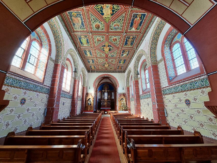 Die Kirche ist videoüberwacht, nachdem Ende September 2019 sechs Gemälde aus dem Hochaltar gewaltsam herausgebrochen und gestohlen wurden.