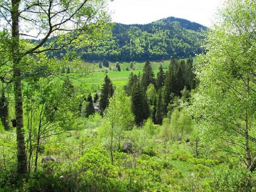 Beginnend am Mösle-Parkplatz (880 m) geht es, nachdem wir die Menzenschwander Alb überquert haben, kurz durchs Hinterdorf, vorbei an typischen Schwarzwaldhöfen. Am Schwarzbergweg biegen wir links ab und gehen das Asphaltsträßchen bis zum Ende bergauf. Nun folgen wir einem schmalen Pfad. Auf halber Talhöhe folgen wir dem Wildapfelpfad. Nach wenigen Metern sehen wir im Westen ins Krunkelbachtal und in der Ferne das Herzogenhorn (1415 m). Die höchste Erhebung im Landkreis Waldshut. Denn dieser Zipfel am Feldbergmassiv gehört politisch zum Landkreis am Hochrhein. Gleich oberhalb beginnt der Breisgau-Hochschwarzwald.