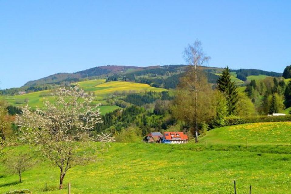 Die schönsten Ausblicke bieten sich gleich zu Beginn der Tour mit Sicht auf St. Peter und die Klosteranlage sowie zum Feldberg. Im Frühling, wenn der Löwenzahn die Wiesen gelb einfärbt, hebt sich die die schneeweiß leuchtende Kappe des Feldberges besonders intensiv ab.