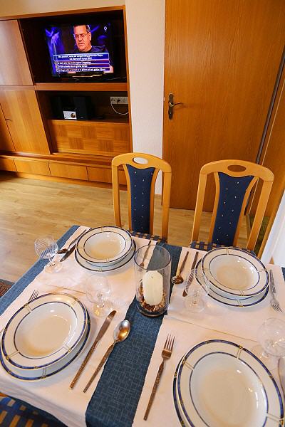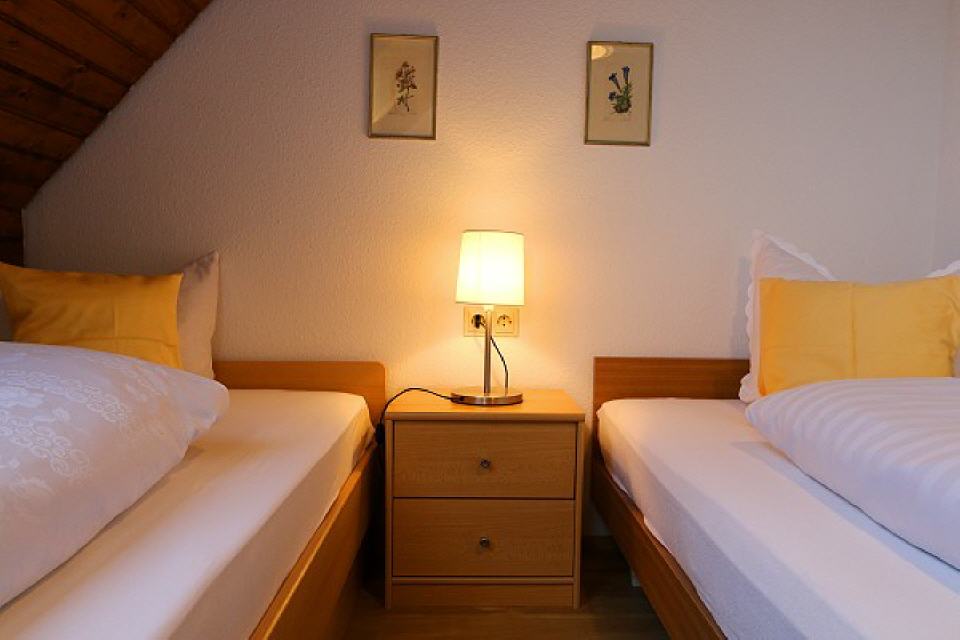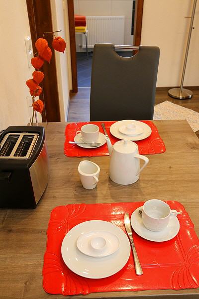 Unsere Ferienwohnungen befinden sich in der ersten bzw. zweiten Etage unseres Hauses und sind alle sehr komfortabel und gemütlich ausgestattet. Die Wohnungen bestehen jeweils aus einem Wohnzimmer mit Sat- Farbfernseher und Telefon, einem bzw. zwei Schlafzimmern (auch Kinderbett bei Bedarf), einer voll eingerichteten Küche mit Essecke, Spülmaschine, Elektroherd mit Backofen und Kaffeemaschine. Einem Bad/Dusche/WC sowie einem sonnig gelegenen Balkon. Zu unserem Haus gehört auch eine große Liegewiese mit Gartenmöbeln, Kinderspielplatz, Tischtennisplatte und Grillmöglichkeit. Ein großer Parkplatz sowie Garagen stehen unseren Gästen zur Verfügung.
