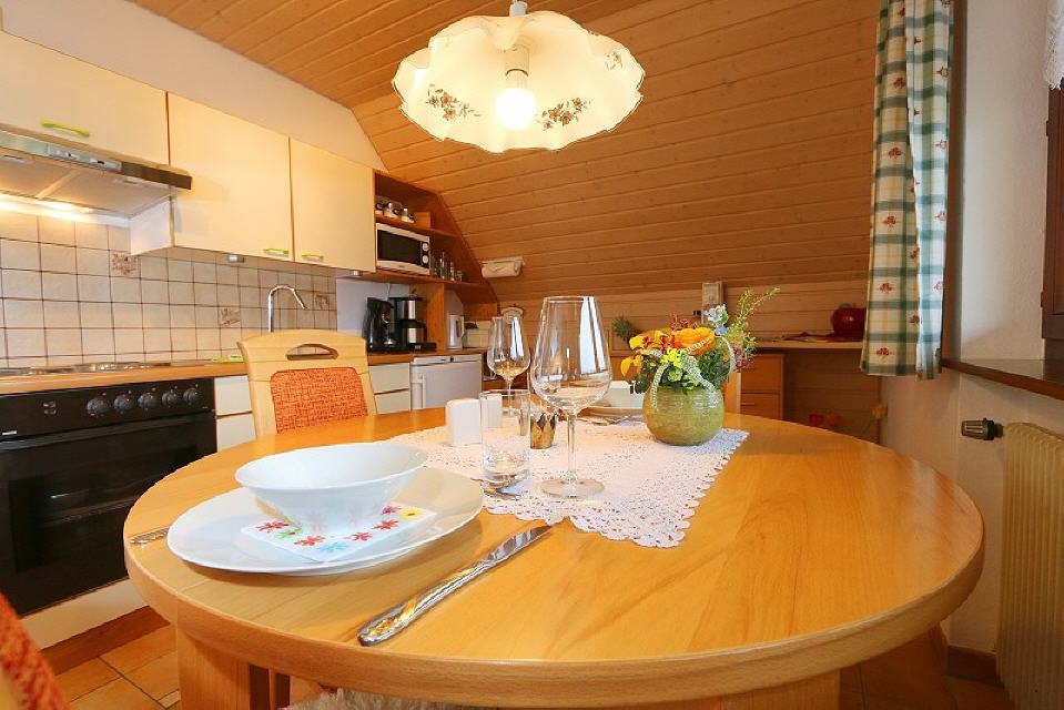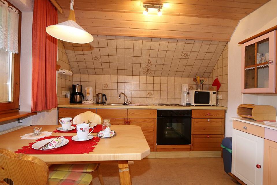 Im Urlaub zurück zur Natur... Mit der Natur in Einklang leben. – In unserem Haus wurden die beiden Nichtraucher-Ferienwohnungen mit heimischem Fichtenholz ausgebaut. Dadurch wurde eine Wohnqualität erreicht, die ein ganz besonderes Wohlbefinden garantiert. Machen Sie sich selbst ein Bild über unsere beiden gepflegten und wiederholt vom DTV klassifizierten ****- Ferienwohnungen und unsere wunderschöne Heimat. Überall pflegeleichter, hygienischer Fliesen- und Parkettboden. Die reichhaltig ausgestattete Küche wird keinen Wunsch auslassen, damit Sie es im Urlaub so bequem wie möglich haben! In schöner Bettwäsche und auf hochwertigen Matratzen werden Sie kuschelige Nächte verbringen und erholsam schlafen. Auf Wunsch zusätzliche Decken und Kissen. Selbstverständlich haben wir im Bad flauschige Dusch- und Handtücher bereitgelegt, ebenso ist ein Föhn vorhanden. Telefon, SAT-TV und eine CD-MC-Stereoanlage komplettieren die Wohnungen.