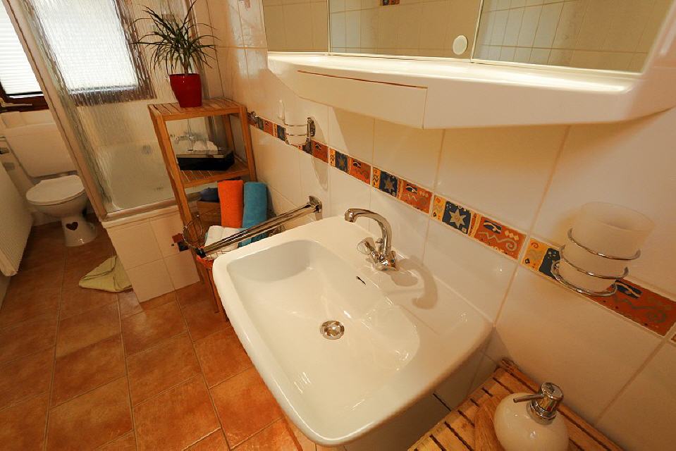 Bad mit Dusche/Badewanne, WC, Föhn, Pflegeprodukte
