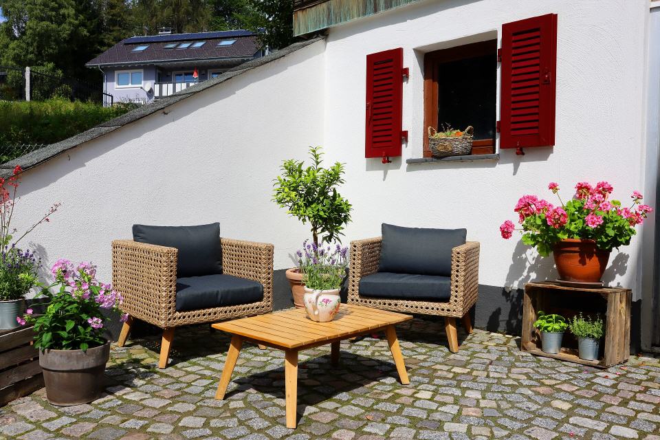 - Balkon / Terrasse / Garten: Balkon, Balkonmöbel, Bänke, Garten, Gartenmöbel, Hof, Holzgrill, Kohlegrill, Liegewiese, Sonnenliegen, Sonnenschirm, Terrasse, überdachte Terrasse (mobil), Windschutz