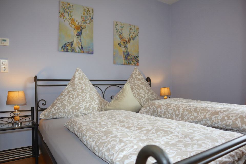 - Schlafzimmer 2: 15 qm, Bettwäsche, Doppelbett 1,80 x 2,00m, Kleiderschrank, Kommode, Leselampe am Bett, Spiegel, zusätzliche Decken