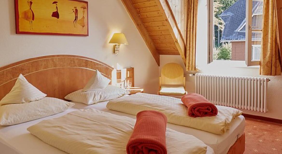 Diese beiden 40 qm bzw. 60 qmfür zwei Personen im Dachspitz gibt es einmal mit Blick zur Westseite und einemal mit Morgensonne zur Ostseite. Beide haben eine separate Küchen- zeile sowie Badezimmer mit Dusche und WC. Preis ab 59 Euro