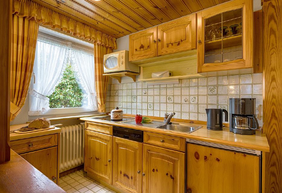 gut ausgestattete Küche mit einer Eckgruppe als Essplatz (im Schwarzwaldstil integriert)
